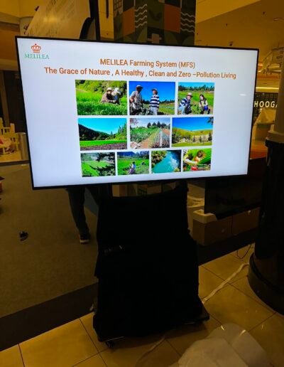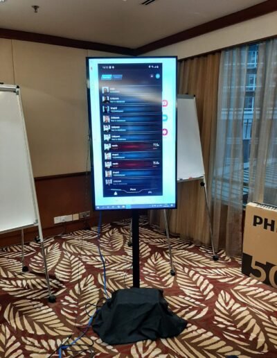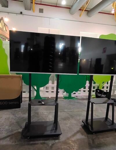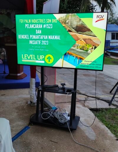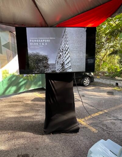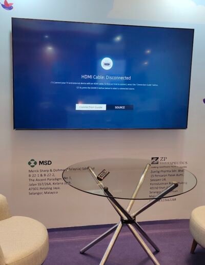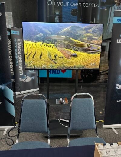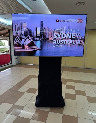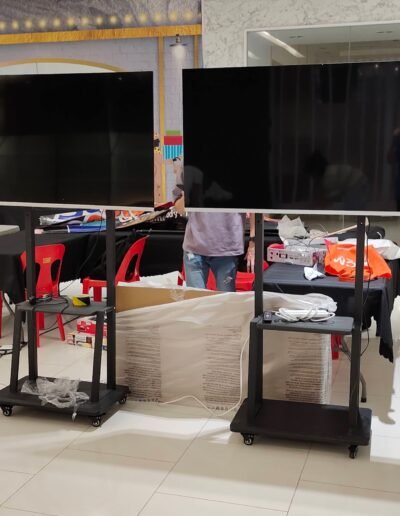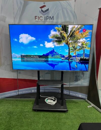 - A standard 40″ display rents for an average of RM120.00 per day. (for a 3 days events)