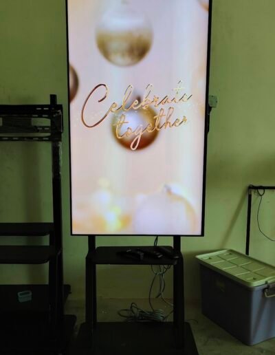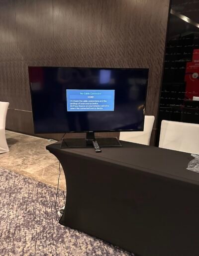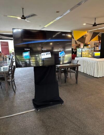 Model : Sharp 60″ 4K Ultra Hd Easy Smart Tv. if your event need a bigger screen to showcase your products, a game, a multimedia file, then 60 inch tv should meet your requrement. it look really great to put with your events.
