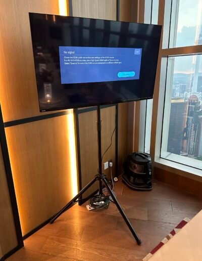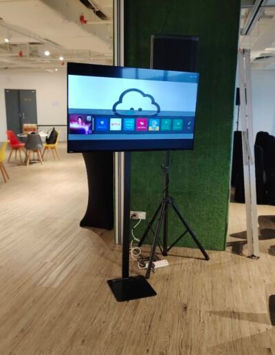 Our 40″ tv is Samsung Full Hd TV, come with usb port and hdmi port. 40 inch tv is suitable for a booth display on event, it show your content with optimum size. you may lock your televison on wall or just hang on a floor stand, click to know more about our 40″ tv rental.